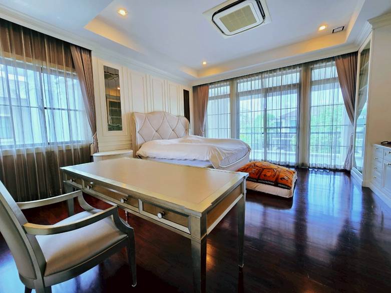 หากขึ้นมาที่ชั้น 2 และเดินไปทางปีกขวาของตัวบ้านจะพบกับห้อง Master Bedroom ขนาดใหญ่ที่คือความหรูหราที่แท้จริง ห้องกว้างโปร่งรองรับเตียงขนาดใหญ่ได้ถึง 7 ฟุต ตกแต่งบิ้วท์อินไว้ครบทั้งตู้เก็บของและชั้นวางทีวี ด้านซ้ายของเตียงมีระเบียงขนาดใหญ่ สามารถนั่งจิบกาแฟยามเช้า มองวิวสวนสวย หรือรับลมยามเย็นได้ ในห้อง Master Bedroom นี้มีห้องน้ำในตัวขนาดใหญ่ พร้อมอ่างอาบน้ำจากุชชี่ เสมือนยกสปามาไว้ในบ้าน เหมาะสำหรับแช่น้ำผ่อนคลายพักผ่อนในวันที่เหนื่อยล้าจากการทำงาน ภายในห้องน้ำแยกโซนเปียกและแห้ง ในโซนเปียกแยกห้องอาบน้ำ Shower Room และห้องน้ำ Toilet Room จากกัน และภายในห้องน้ำขนาดใหญ่นี้ได้ถูกตกแต่งด้วย Walk-in Closet มีตู้เสื้อผ้าขนาดใหญ่ที่สามารถรองรับเสื้อผ้าและจัดเก็บของใช้ส่วนตัวได้เป็นจำนวนมาก