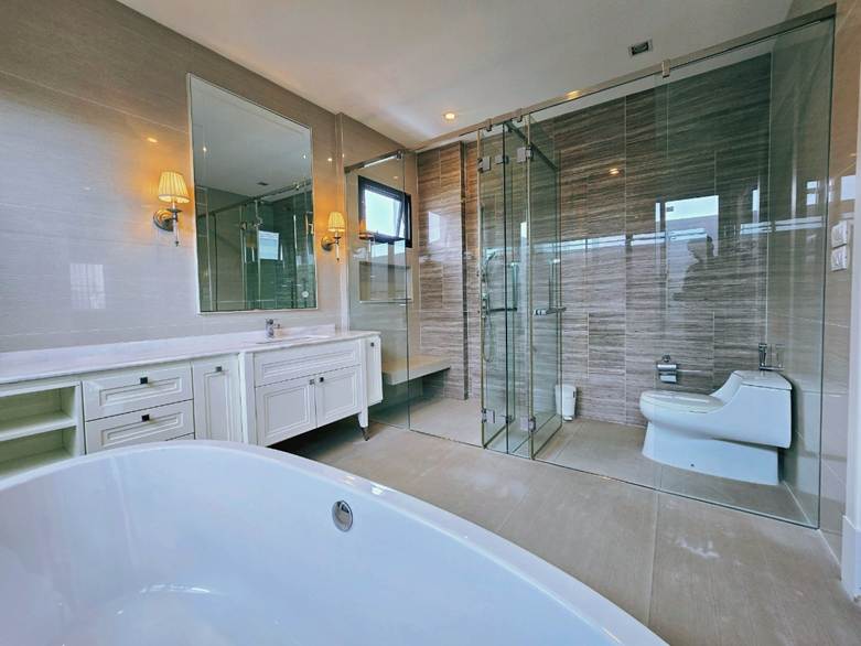 จุดที่เป็นไฮไลท์ของบ้านหลังนี้คือการให้ Master Bedroom มาถึง 2 ห้อง โดยห้อง Master Bedroom อีกห้องจะอยู่ถัดมาที่ปีกทางด้านซ้ายของตัวบ้าน ซึ่งกว้างขวางไม่แพ้กัน แม้ห้องนี้จะไม่มีระเบียงมา แต่ขนาดของห้องนอนใหญ่ สามารถวางเตียงขนาด 7 ฟุตได้เช่นกัน มีการบิ้วท์อินตู้เก็บของและชั้นวางทีวีมาให้พร้อม และที่สำคัญคือการมีห้องน้ำขนาดใหญ่พร้อม Walk-in Closet ในตัวซึ่งถือเป็นจุดเด่นที่ตอบโจทย์ครอบครัวใหญ่ได้เป็นอย่างดี ในส่วนของห้องน้ำในห้องนี้มีอ่างจากุชชี่แบบลอยตัว และยังคงมีการแยกโซนเปียกโซนแห้งภายในห้องน้ำ โดยการแบ่งเป็นส่วนของ Shower Room และ Toilet Room ทำให้สามารถใช้งานพร้อมกันได้สะดวกและเพิ่มความปลอดภัยให้แก่ผู้อยู่อาศัยอีกด้วย