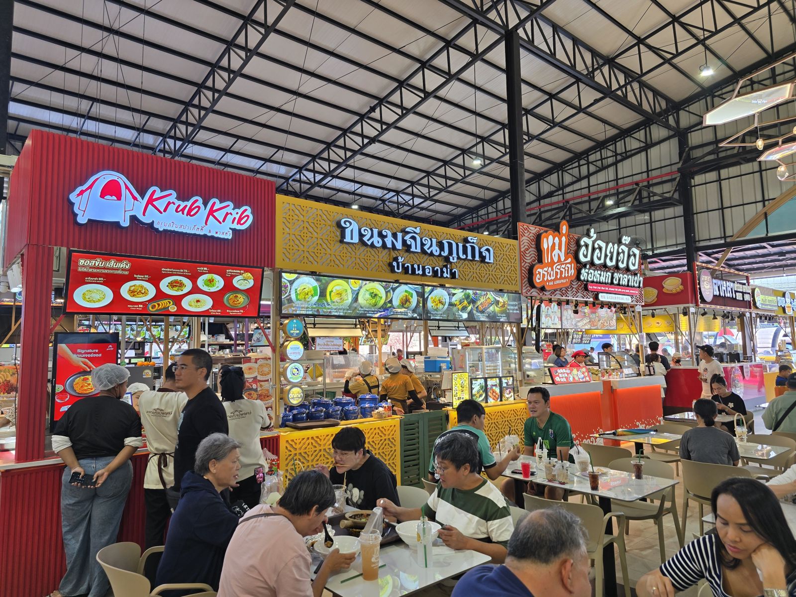 เมื่อเดินลึกเข้ามา โซนอาหารจะเป็นจุดที่ดึงความสนใจได้ทันที ร้านอาหารมีให้เลือกหลากหลาย ตั้งแต่อาหารตามสั่ง ร้านข้าวแกง สตรีทฟู้ด ไปจนถึงร้านของหวานและเครื่องดื่ม คุณสามารถเลือกได้ว่าจะซื้อกลับบ้านแบบรวดเร็ว หรือจะนั่งกินสบาย ๆ ให้เป็นช่วงพักของวันก็ได้ ร้านจำนวนไม่น้อยตั้งใจทำคุณภาพจริง ไม่ได้เป็นร้านชั่วคราว ทำให้ตลาดมีชีวิตตลอดวัน ไม่ได้จำกัดอยู่แค่ช่วงเย็น