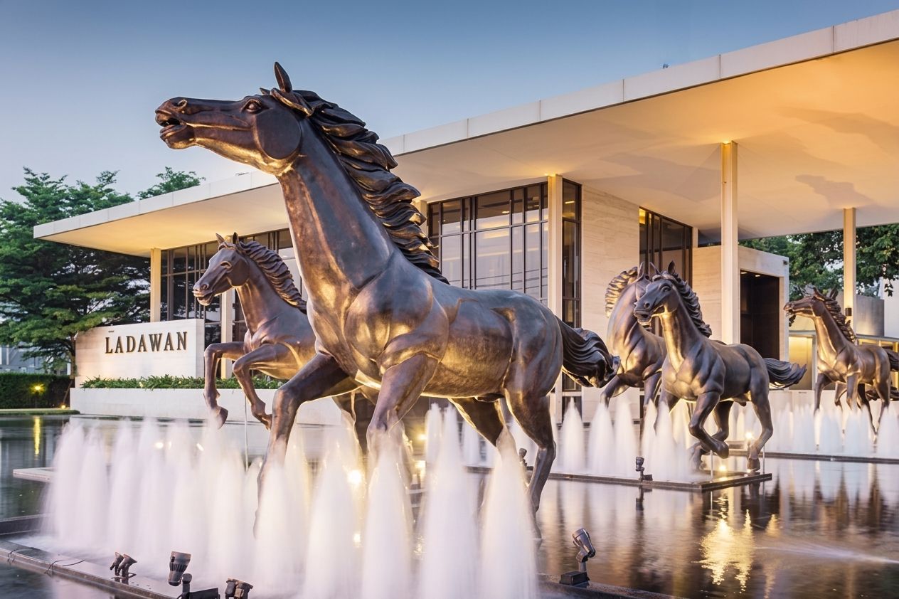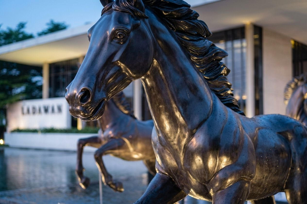 หากสังเกตให้ดี ท่วงท่าของม้าทั้ง 8 ตัวหน้าโครงการลดาวัลย์ ไม่ได้เป็นเพียงม้าที่ยืนอยู่นิ่งๆ แต่เป็นม้าที่กำลัง "ควบทะยาน" ด้วยมัดกล้ามเนื้อที่ทรงพลังและองศาการก้าวกระโดดที่พร้อมเพรียง การตั้งรูปปั้นในลักษณะนี้ จึงเป็นการกระตุ้นกระแสพลังงานแห่งความสำเร็จให้ตื่นตัวอยู่เสมอ สื่อถึงการทำธุรกิจที่ราบรื่น ก้าวหน้าเหนือคู่แข่ง สามารถพลิกวิกฤตให้เป็นโอกาส ปิดดีลธุรกิจระดับร้อยล้านพันล้านได้อย่างฉับไว และกอบโกยชัยชนะกลับมาสู่เคหสถานได้อย่างรวดเร็วในทุกๆ วัน
