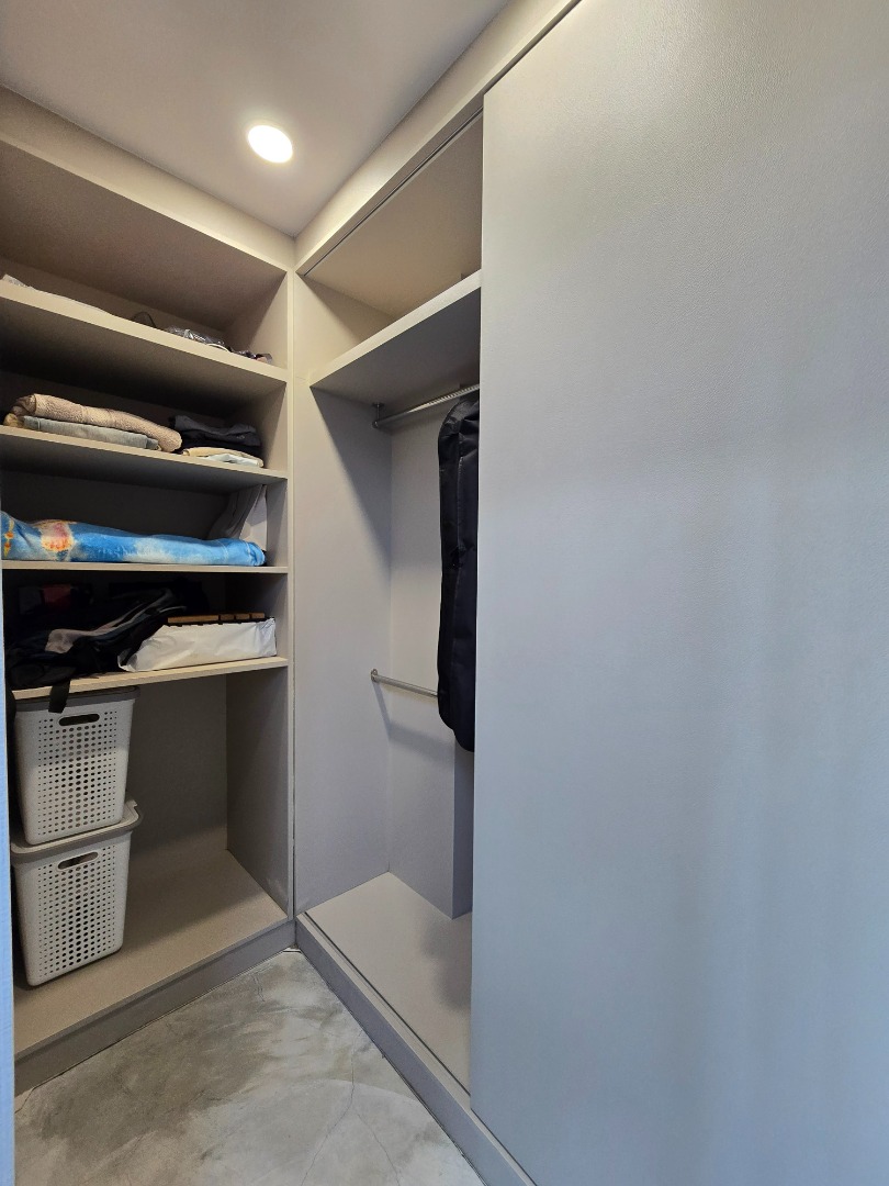 - 2 ห้องนอน ห้องนอนใหญ่มีตู้เสื้อผ้า walk-in closet และตู้เก็บของบิ้วอินท์ พร้อมเตียงนอนขนาด 6 ฟุต