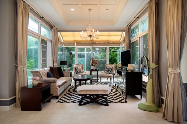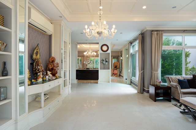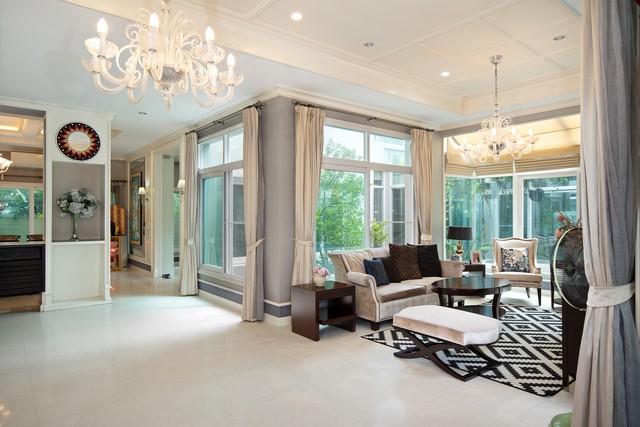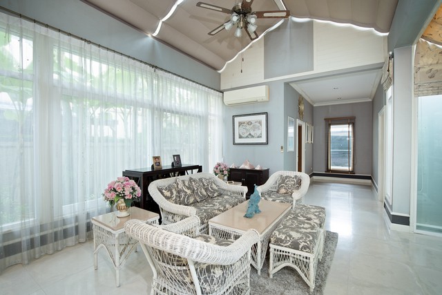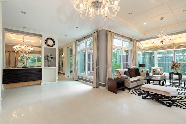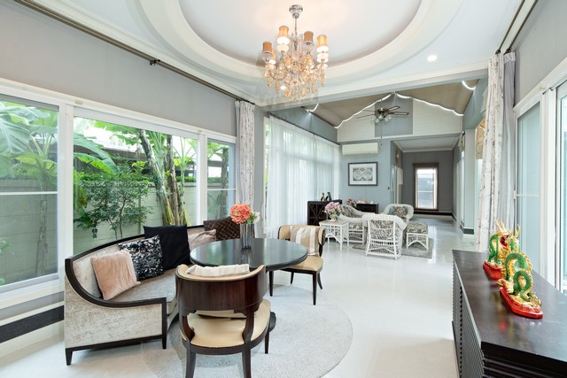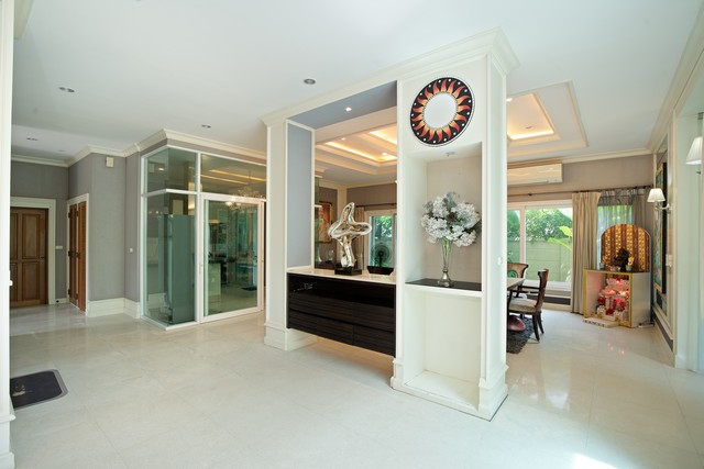 - 1 ห้องโถงรับแขกขนาดใหญ่ มีส่วนหลังคากระจก skylight มีช่องแสงที่จะช่วยสร้างบรรยากาศอันปลอดโปร่ง และ 1 ห้องโถงย่อยออกแบบเป็น หลังคากระจก skylight เช่นกัน ที่ถูกออกแบบให้ดูโล่ง โปร่ง หรูหราและทันสมัยสามารถเดินออกสู่สวนและสระว่ายน้ำได้