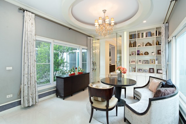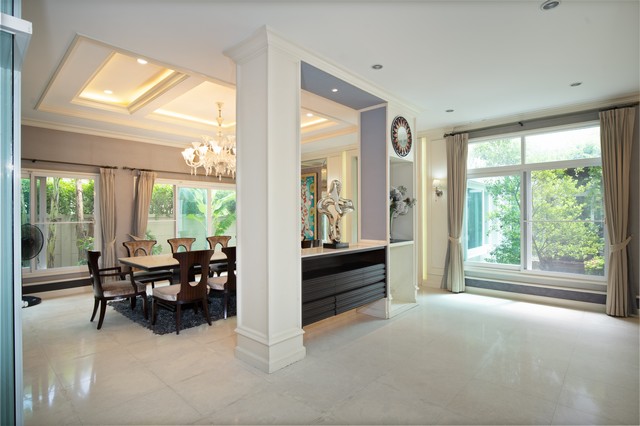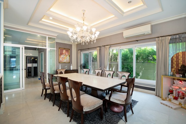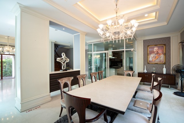 - โซนรับประทานอาหาร พร้อมโต๊ะรับประทานอาหารหรู ชุดใหญ่ 10 ที่นั่ง ตกแต่งด้วยแชนเดอเลียร์คริสตัลสุดหรู