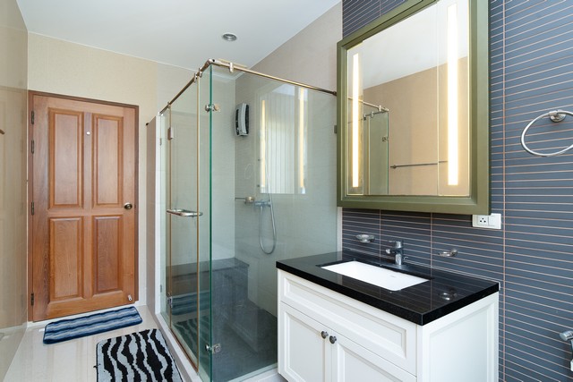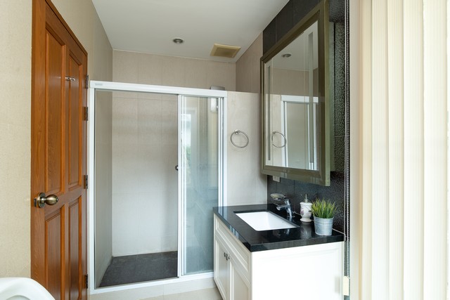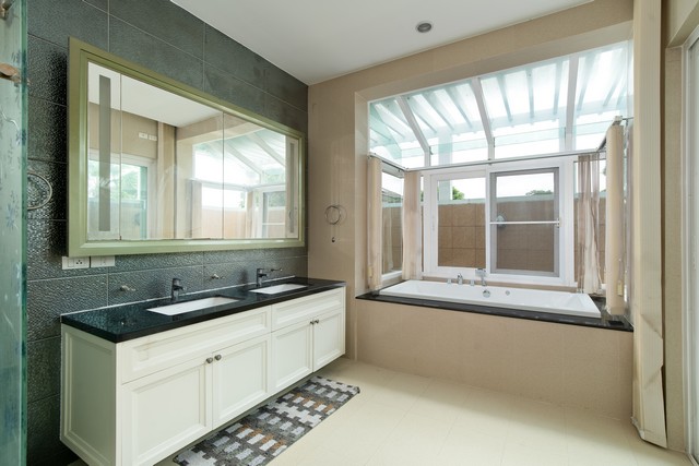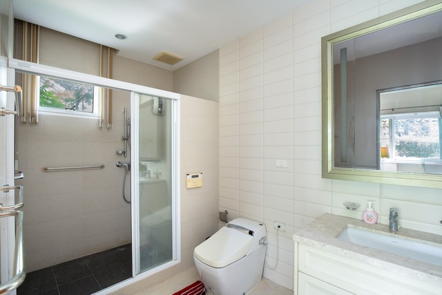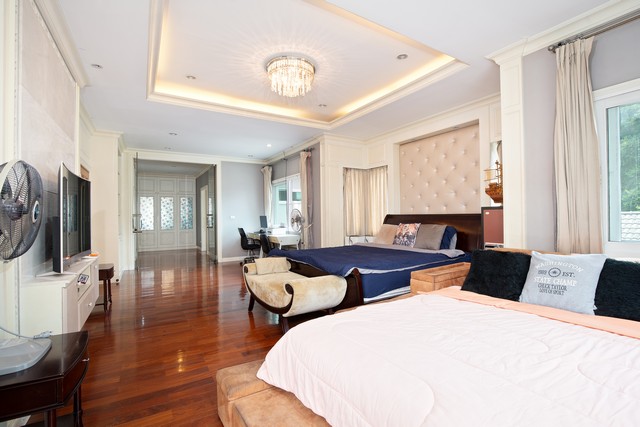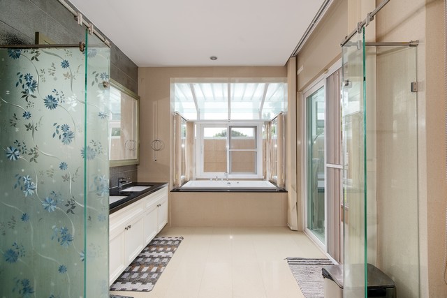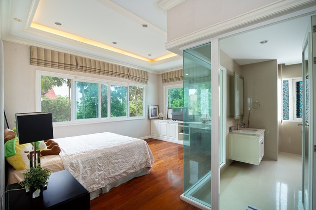 - ห้องนอนใหญ่ ตกแต่งแล้วพร้อม walkin-closet มีส่วนอาบน้ำ 2 ส่วน ,มีอ่างอาบน้ำ จากุซซี่ , Shower ,อ่างล่างหน้าแบบคู่