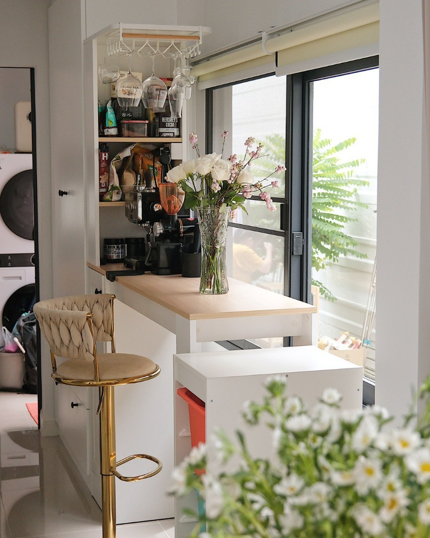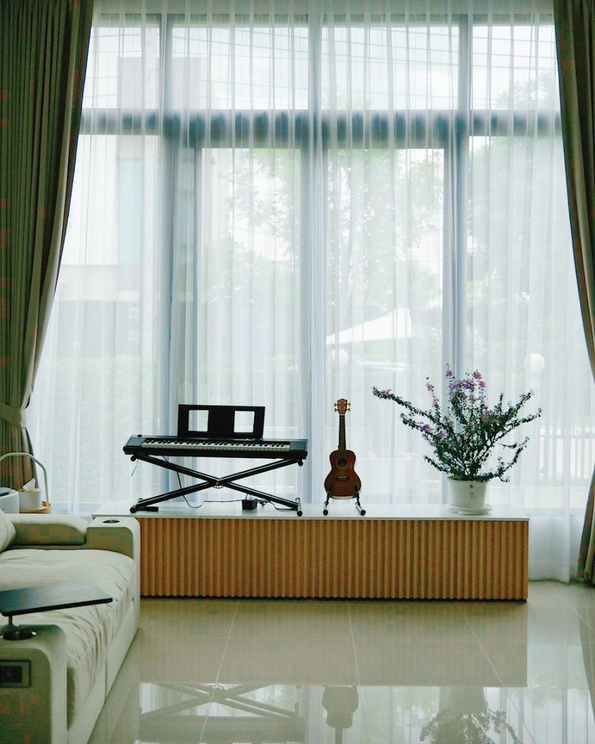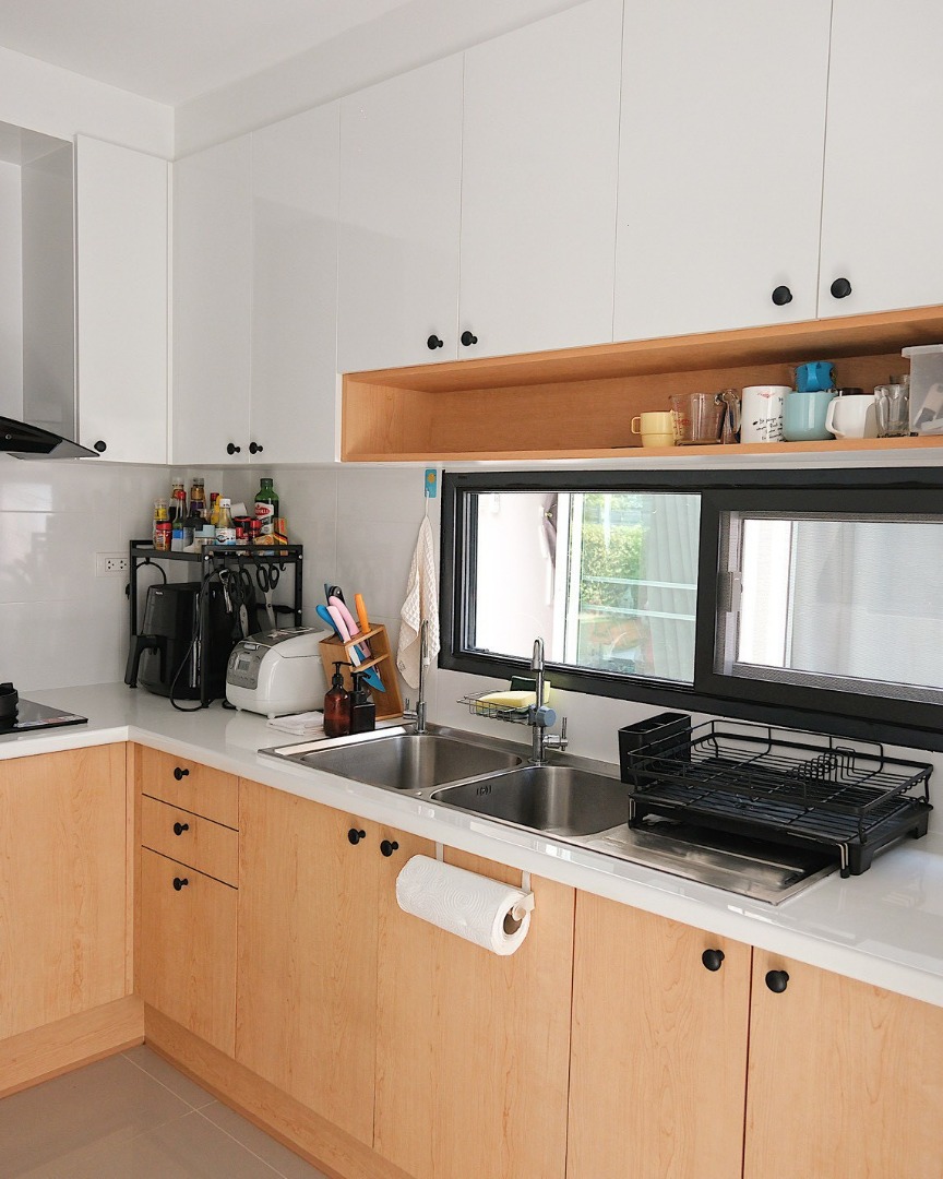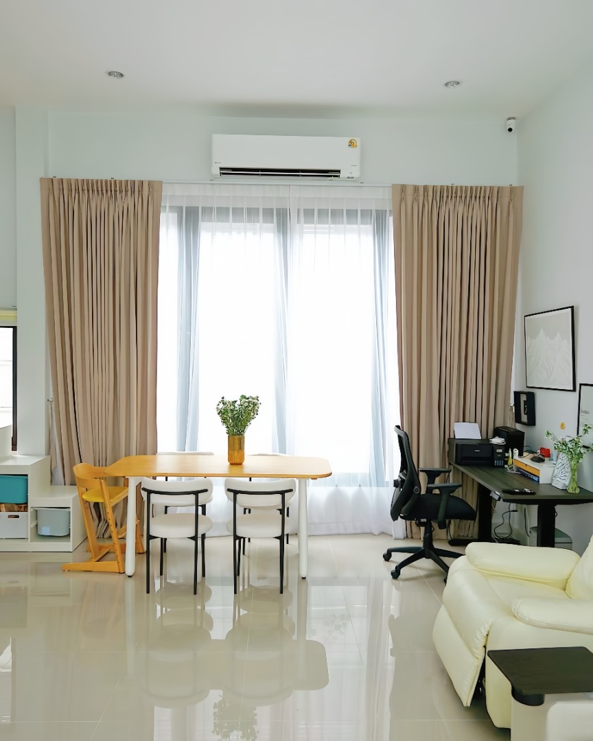 - Built-in Thai kitchen decorated with electrical appliances - Spacious living room With a 3 meter high glass ceiling, its open and not uncomfortable