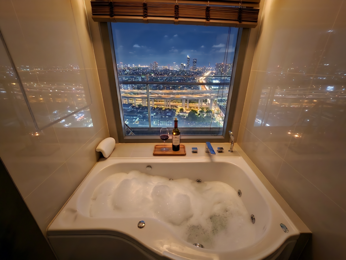 World-Class Facilities: A 100-meter Infinity Edge Pool on the 44th floor with breathtaking views of the Rama IX Bridge.